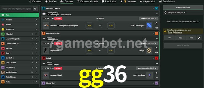 O gg36 oferece uma grande seleção de opções de apostas em e-sports com probabilidades competitivas